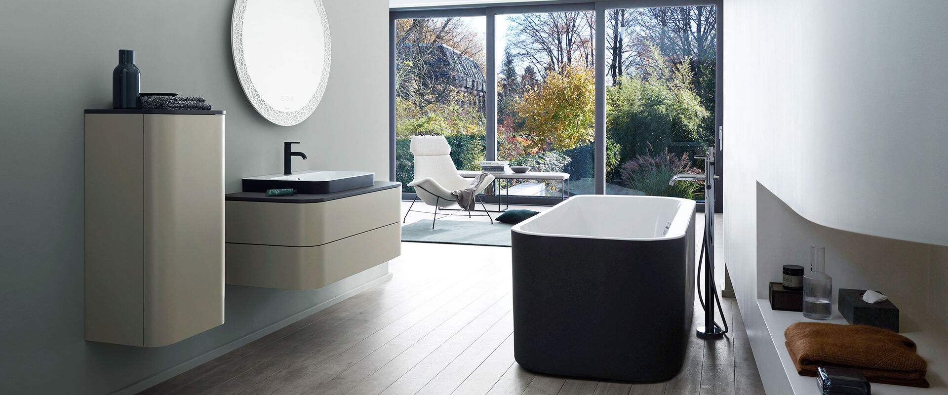 Moderne Eleganz in allen Elementen der Badserie