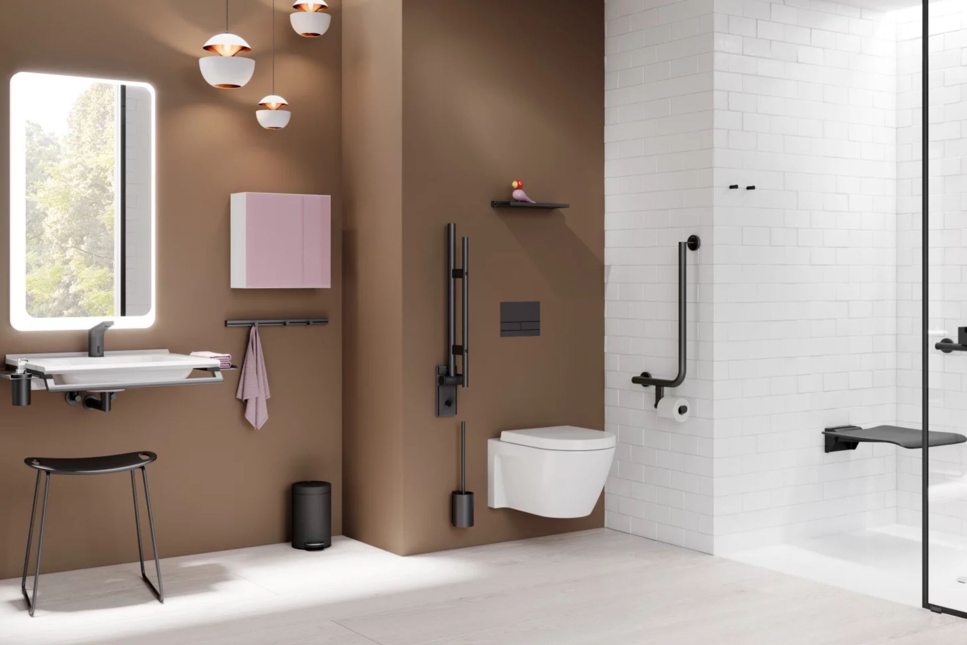 Ein Badezimmer vermittelt dann Ruhe, wenn es Halt gibt und Bewegungen selbstverständlich werden. Barrierefreie Gestaltung schafft genau dieses Gefühl von Sicherheit und unterstützt den Menschen in jeder Lebensphase, unaufdringlich, funktional und zugleich wohnlich. Mit ganzheitlichen Lösungen für das barrierefreie Bad zeigt HEWI, wie Design, Ergonomie und Orientierung zusammenwirken. Durchdachte Halte- und Stützsysteme, klare Formen und angenehme Materialien geben Sicherheit und fördern Selbstständigkeit.